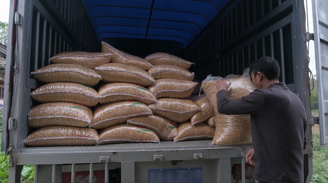 上午七點,周師傅來到存放玉米的倉庫,準備裝車給縣城周邊的農戶運輸飼料,車輛穩穩停在裝卸口,封裝機械和工人都已到位。“我做玉米飼料的運輸已經14年了,從農戶和糧販收玉米,然后轉給周邊的養殖農戶,一個月要銷售200噸的貨。”周師傅介紹。