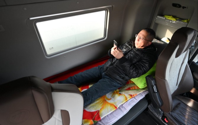 歐曼銀河5M純電重卡座艙之內,滿是人性化的舒適設計,告別傳統重卡的局促與疲憊。其采用純平地板設計、大空間布局,頭部與腿部空間十分充裕,長時間駕駛也不會覺得壓抑;清晰易讀的大屏搭配智能語音控制,操作便捷,“有啥事直接說,它就給辦了,手不用離開方向盤,分心少了,開車也更安心”。更讓劉師傅滿意的是車內的臥鋪,“路上紅綠燈多,開久了難免會累,休閑的時候躺下來休息一會兒,特別舒服”。此外,車輛密封效果出色,搭配低噪音電驅系統,營造出靜謐舒適的駕乘環境,休息時能睡得更安穩,也讓漫長的運輸路途多了一份愜意。