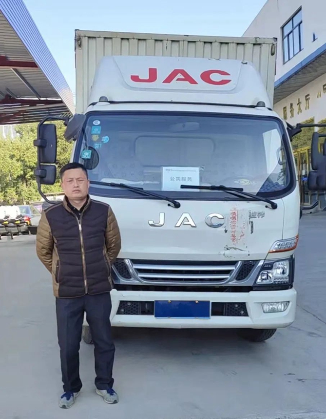 潤宜佳超市司機和江淮輕卡合影