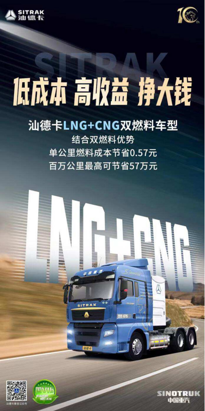 全新LNG+CNG雙燃料中國重汽汕德卡G7S燃氣車 讓效益最大化