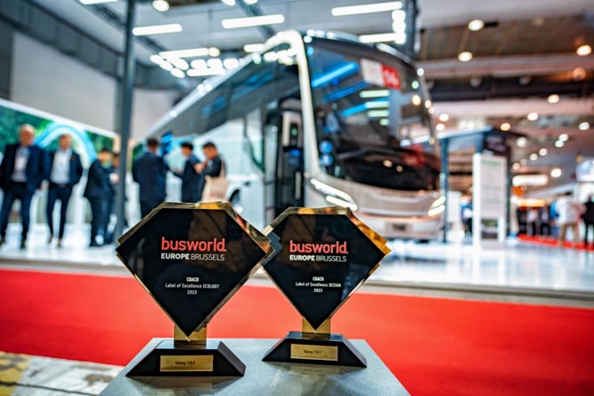 憑借著強大的研發制造實力及數十年技術沉淀,如今的宇通已充分具備立足國際高端市場的底蘊與決心,并在海內外高端市場實現全面突破。2023年,宇通客車獲得由法國于達克公司 (UTAC) 授予UN R155車輛網絡安全管理體系認證證書,成為中國商用車行業首個獲得此項認證的企業;在2023年比利時歐洲客車展覽會上榮獲 “busworld設計獎”和“busworld環保獎”雙料大獎。在科技創新的驅動下,宇通一次又一次地站在世界舞臺中央,擘繪著驚艷全球的壯美畫卷。