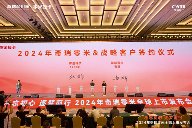 奇瑞零米輕卡事業部總經理李杰和寧德時代商用車執行副總裁莎仁其其格戰略簽約
