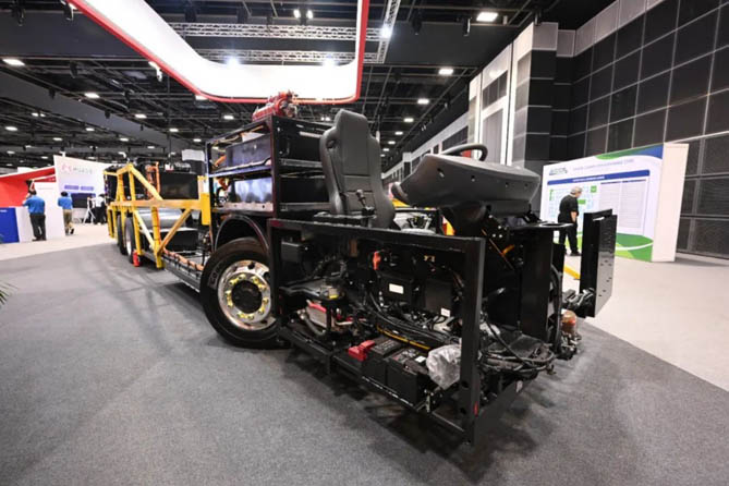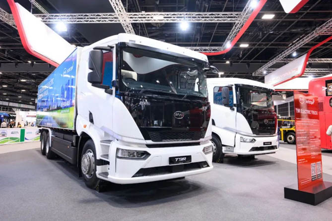T9R作為比亞迪在海外首款搭載商用車專用刀片電池的重卡,首次亮相展會,該車續航可達320公里,在安全性、可靠性、動力性方面表現出色;適用于環衛、建筑運輸和城市物流等應用場景,助力新加坡創造更清潔、更綠色的未來。