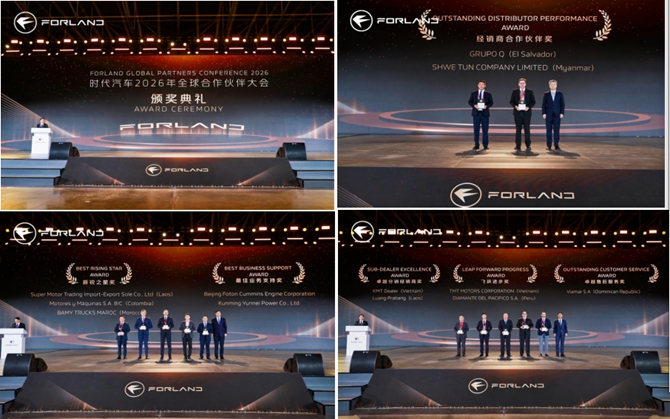 大會(huì)同步舉行了全球合作伙伴頒獎(jiǎng)典禮,由福田汽車職能副總裁、時(shí)代汽車黨委副書記戴松高主持,為來(lái)自越南、老撾、秘魯、摩洛哥等國(guó)家和地區(qū)的12家年度突出合作伙伴頒獎(jiǎng),現(xiàn)場(chǎng)掌聲持續(xù)不斷,進(jìn)一步凝聚了全球合作伙伴的合作信心。