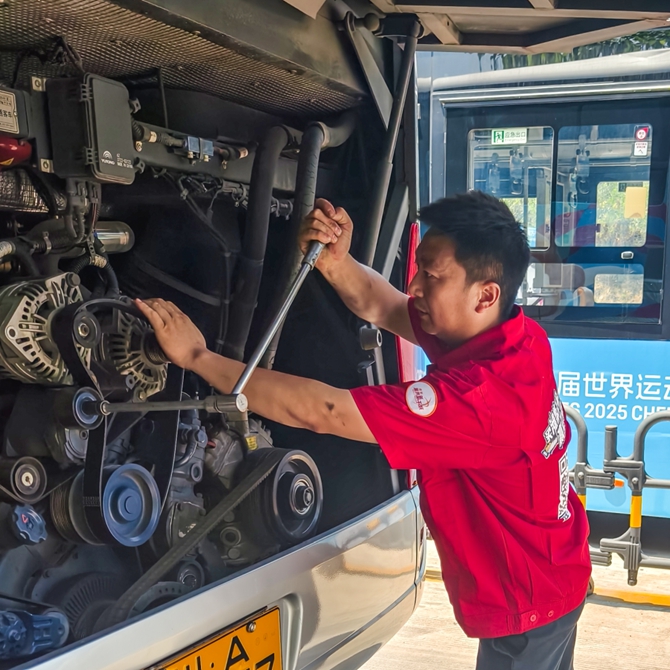 8月的成都,日氣溫最高一度超過40℃。在高溫下完成跨場館調度給保障工作帶來了新的挑戰。來自德陽市黑馬汽車服務有限公司的周師傅說:“一看到搭載濰柴發動機的車輛平穩駛過賽場,就很自豪,即便工裝被汗水浸透,也有一種滿滿的成就感!”