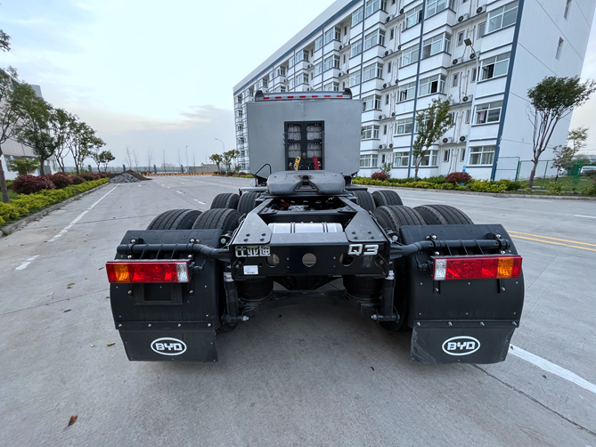 作為新能源重卡產(chǎn)品的“中樞系統(tǒng)”,比亞迪同時(shí)掌握電池、電機(jī)、電控“三電”核心技術(shù)及配套充電設(shè)施,將各種完全自主“黑科技”都應(yīng)用到比亞迪Q3純電動(dòng)牽引車身上。