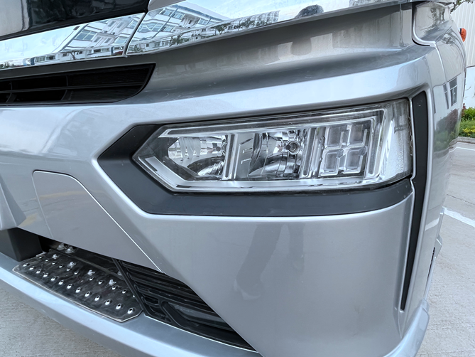 同時(shí),其采用超強(qiáng)輕質(zhì)結(jié)構(gòu),集成化組件,整車重量降低2%~3%,整車能耗降低1%~2%。另外,黑色前面板的下方鑲嵌了一條橫貫整個(gè)車頭的鍍鉻裝飾條,為整車外觀添加了一抹亮色。駕駛室側(cè)身的腰線使用了上揚(yáng)的線條,讓整車的造型更加犀利。