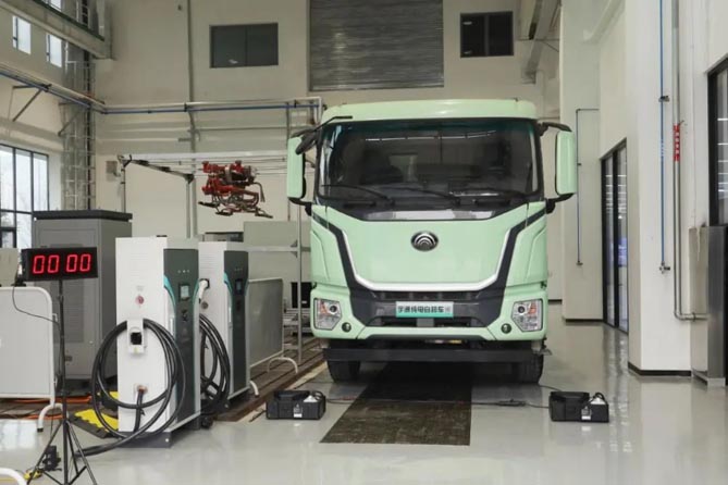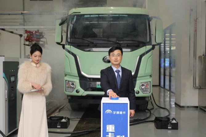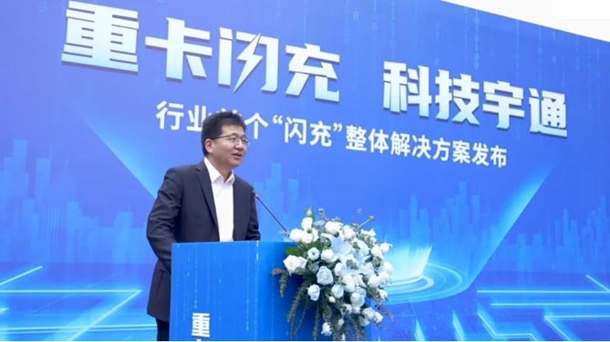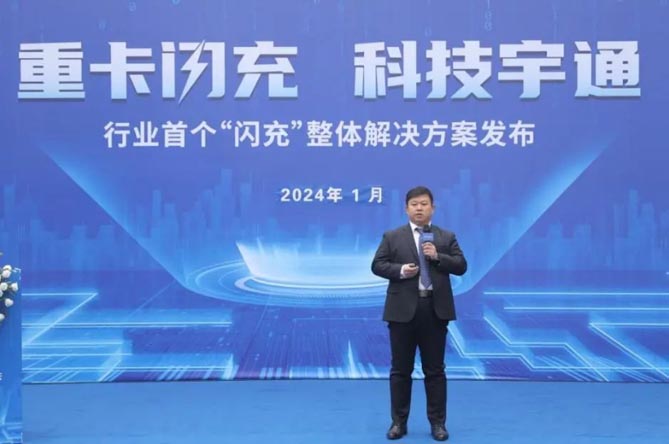 為最大程度給客戶賦能,宇通重卡率先打響了行業“閃充”第一槍。2024年1月17日,在企業相關領導、用戶代表以及行業媒體、線上觀眾的共同見證下,宇通重卡在鄭州發布了行業首個“閃充”整體解決方案。