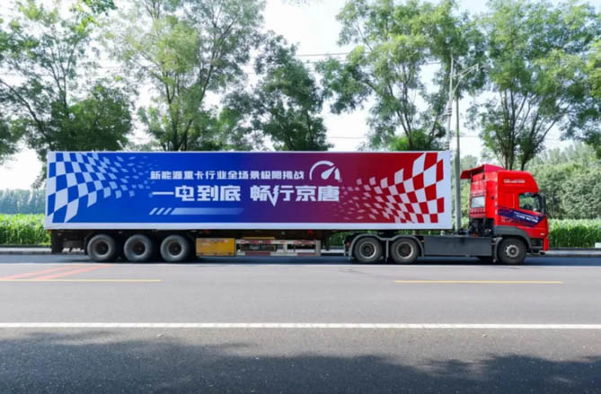 從裝車到運送再到廠區卸貨,再返回到河北唐山,車輛在實況運輸場景下滿載49噸,全程歷時9小時,憑借一次充電、一電到底的實力,最終以每公里1.06度電耗,成功挑戰332公里續航量程,給新能源重卡跨市、跨省運營提供了真實示范。
