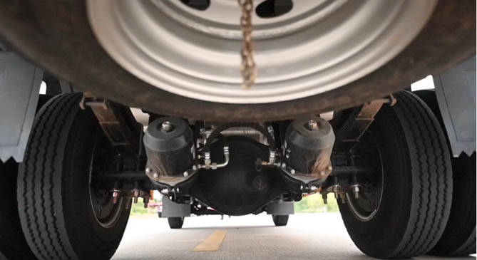 這款車對板簧進行了輕量化設計,前板簧采用少片簧設計,后板簧則采用了5+2的“主多富少”設計,使整車具備更大的承載性。