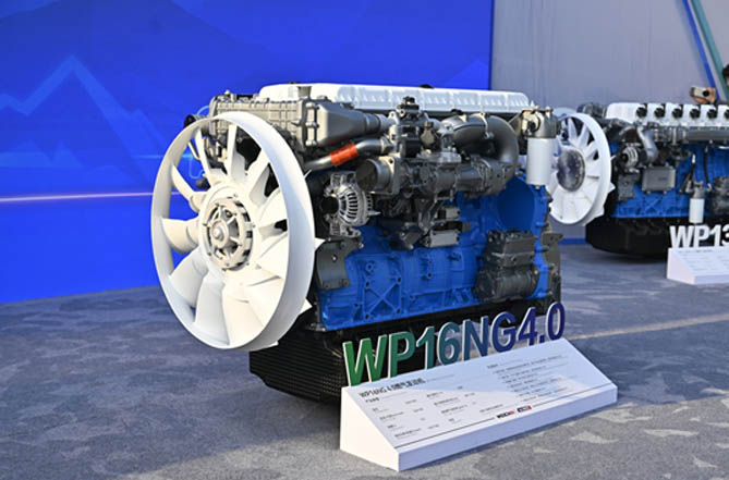 全新一代WP16NG4.0發動機,是濰柴動力針對西南山區等工況所打造的一款專屬產品,排量15.7升,750馬力,峰值扭矩3400N·m,全新燃燒室設計、雙頂置凸輪軸結構,動力性、經濟性、可靠性等均有卓越表現,與同排量競品相比,升功率和升扭矩均有超過10%的提升,平均車速提升15%,爬坡能力提升30%。