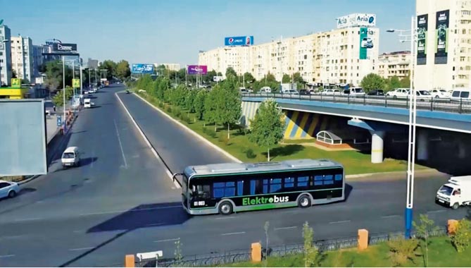 烏茲別克斯坦首都塔什干運營的宇通純電動公交車