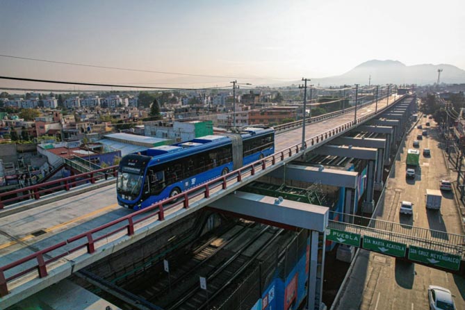 行駛在墨西哥的宇通18米雙源無軌電車