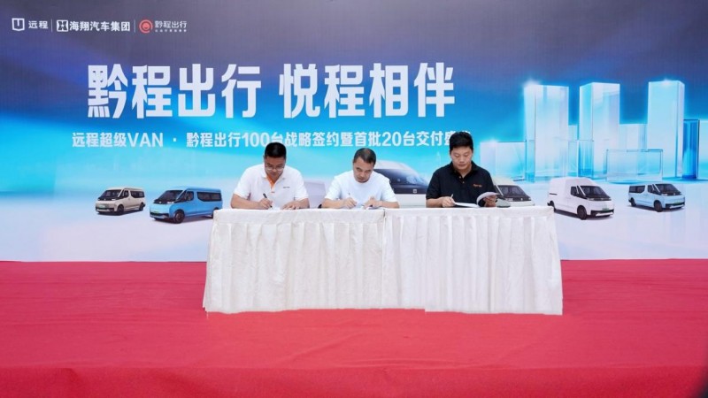 7月22日,遠(yuǎn)程超級VAN與黔程出行100臺(tái)戰(zhàn)略簽約暨首批20臺(tái)悅程版交付儀式在貴州舉行。遠(yuǎn)程超級VAN西南特區(qū)大區(qū)經(jīng)理關(guān)貴根、貴州海翔集團(tuán)品牌總經(jīng)理紀(jì)偉、黔程出行創(chuàng)始人兼董事長羅富坤等出席活動(dòng)。此次合作標(biāo)志著雙方在綠色出行領(lǐng)域的深度布局,將為貴州用戶帶來更高品質(zhì)的定制客運(yùn)體驗(yàn)。