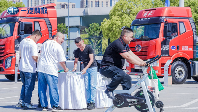 解放攜J7、鷹途、J6V經典版等多款重拳產品助陣“5.2卡友節”。在本屆“5.2卡友節”主會場的眾多活動當中,最受到卡車司機歡迎的就是其中的“游園”環節,現場眾多展位都組織了豐富多彩的活動,在“解放大本營”,卡友們充分感受到“吃在解放”“看在解放”“玩在解放”“學在解放”的節日氛圍。其間,不僅提供豐富特色小吃,還有循環歌舞表演及驚喜抽獎環節,卡友自由組隊參與游戲互動,玩累了還能坐下來感受一次解放發展文化之旅,讓五湖四海的卡車人盡享歡樂時光。解放旗下“魚快創領”和“賦界科技”展位也被圍得水泄不通,先進的智能科技讓卡友一飽眼福,實際幫助用戶解決營運難題。