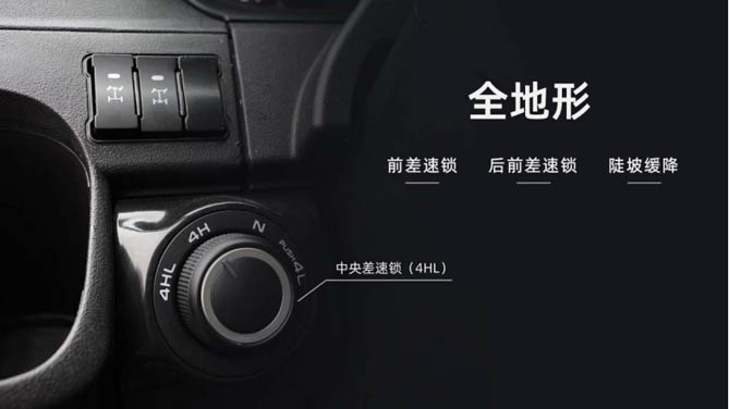 越野配置專業:配備了三把鎖中央差速鎖配合前、后差速鎖的組合,確保車輛在任何路況下都有出色的牽引力和穩定性,在復雜地形,操縱更高效、更流暢。專業的越野車橋設計,前橋負荷能力2.07T,后橋負荷能力3.2T,確保了車輛承載能力的同時,也增強了越野時的可靠性。