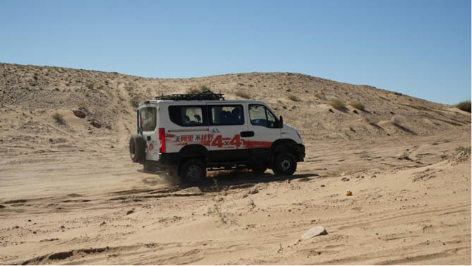 當踏入廣袤無垠的沙海阿拉善、面對交錯縱橫的丘陵溝壑時,歐霸·山海越野四驅車的全地形屬性依然盡顯非凡,它能夠根據路況瞬間調整動力分配,大于60%的爬坡能力助力駕駛者輕松沖上坡頂;阿拉善還分布著許多色彩斑斕的海子,歐霸·山海憑借超過1000毫米的涉水能力無懼深淺不一的水面,讓人與車一同在這片充滿魅力的土地上,盡情釋放對自由和冒險的渴望。