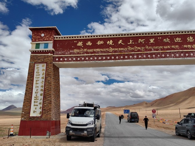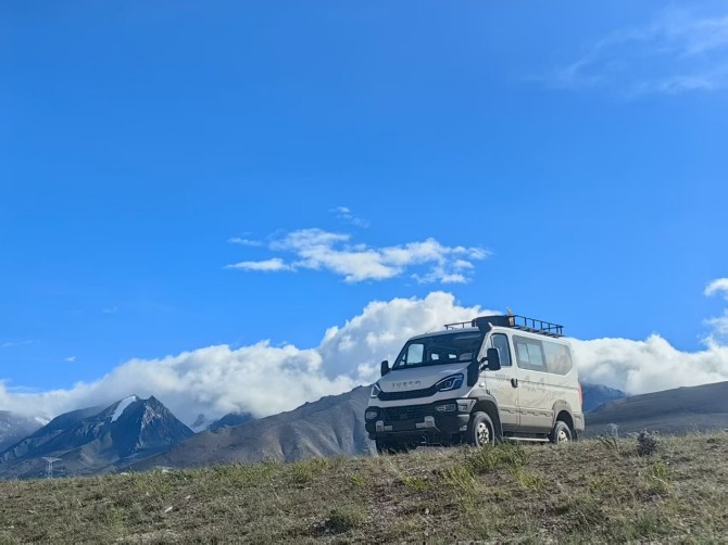 歷經一個月,山哥駕駛著這臺原汁原味依維柯原廠出品的歐霸·山海素車,翻山越嶺,來到了世界上海拔最高、路況最艱險的公路——新藏公路。