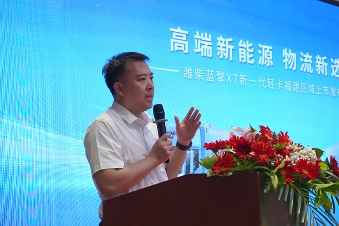 濰柴新能源商用車總經理余浪在致辭中說:“濰柴藍擎X7純電輕卡是中國全新一代輕卡產品,以高顏值、長續航、大承載、高舒適、高安全、高智能,在任何一個細分市場都是極具引領的存在?!?/span>