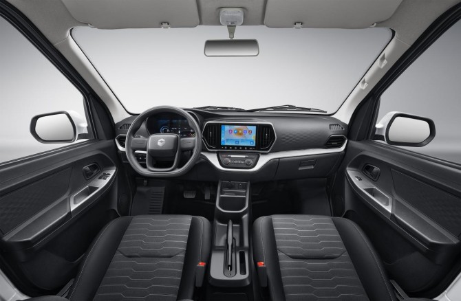 內(nèi)飾采用乘用環(huán)抱式座艙,搭配三幅方向盤和懷擋設(shè)計,讓操作更順手,好看更好用。9寸大屏提升了整車的科技感,還具備手機(jī)互聯(lián)和遠(yuǎn)程車控等功能,讓用車更舒適、更便捷。