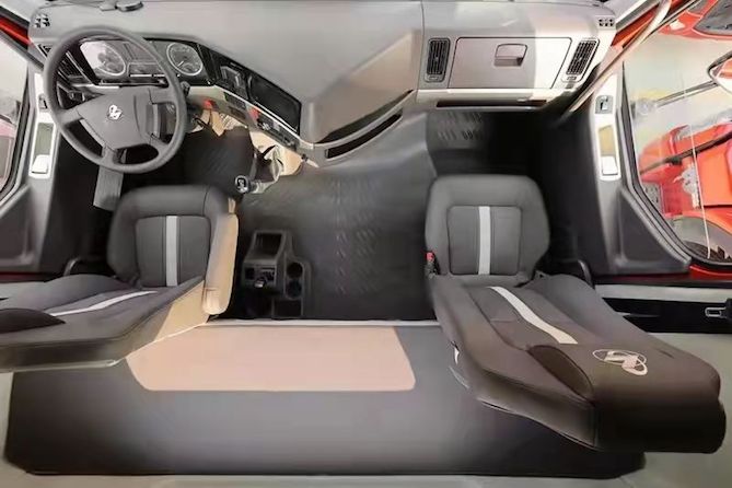 跑長(zhǎng)途身體疲憊精神差?乘龍H5超輕版,必須助你一路躺贏!乘龍H5超輕版的全新駕駛室,采用四點(diǎn)氣囊懸置設(shè)計(jì),配合豪華多功能高端氣囊減震航空座椅,應(yīng)用人機(jī)調(diào)校技術(shù),讓司機(jī)與座椅更貼合、更舒適;同時(shí)更有令許多細(xì)節(jié)控卡友心動(dòng)的平地板、雙臥鋪、手機(jī)支架、1000W 220V的行車電源,以及駕駛室電動(dòng)液壓翻轉(zhuǎn)等等細(xì)節(jié)配置,既舒適、更舒心,從此徹底告別長(zhǎng)途勞苦,一路暢享坦途,掙錢更長(zhǎng)久!