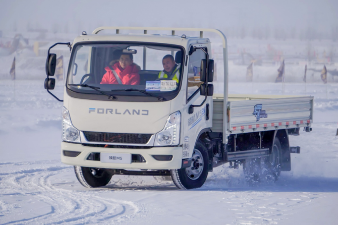 在連續、變速的制動、環路測試中,祥菱U7動力輸出平穩,啟停精準,轉向輕盈。事實上,這樣的卓越表現得益于其“U質”的動力系統。首先補能方面可圈可點,其搭載的寧德時代電池在日常運營環境下通過2C超快充僅16分鐘充電即可達到30%-80%的蓄能,此次在極寒條件下充電效率依然在線。其次,整車的液冷液熱系統可以保持-35℃至65℃的超寬工作溫域,確保電池在極端低溫下活性穩定,無疑為城配物流用戶的冬季出勤率帶來極大保障。實測中,匹配福田自研電池系統的祥菱U7,在低溫環境下表現功率依舊出色,同時具備更“U越”的六合一動力總成優勢,以及EHB能量回收功能和超低風阻系數,進而保持了超低能耗,這些技術及配置是其參與冰雪綜合性能測試的底氣。