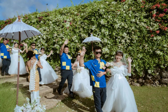 7月11日,德邦在“愛情圣地”巴厘島為50對快遞小哥夫妻免費(fèi)辦專場集體婚禮。德邦選取的PURI BAGAWAN塔曼是巴厘島最獨(dú)特的宴會場地,擁有360度海洋景觀,竇驍&何超蓮、劉詩詩&吳奇隆、林心如&霍建華等明星婚禮均在此舉辦。