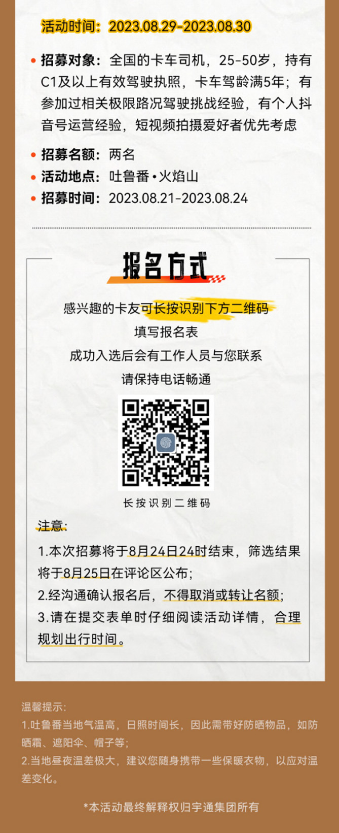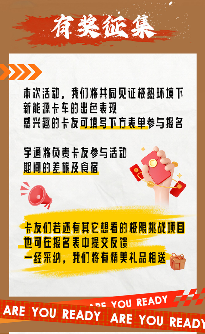 敢來嗎?宇通新能源卡車火焰山極限挑戰(zhàn)全網(wǎng)招募卡友!
