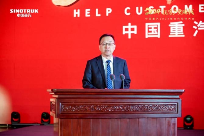 面對2024年國內(nèi)外市場持續(xù)帶來的挑戰(zhàn)。譚旭光表示,中國重汽唯有和合作伙伴繼續(xù)迎難而上,才能再次完勝。這里,最大的秘訣就是攜手合作伙伴“從源頭為客戶著想,讓客戶賺錢,讓我國2000多萬重卡司機獲得幸福感,讓全國正在運行的商用車更節(jié)油,讓我們的快遞物流更高效!“