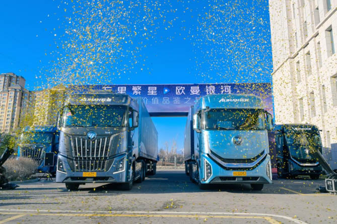 在西安至霍爾果斯的高原征途中,歐曼銀河7燃氣重卡也驚艷亮相。在燃氣超級動力鏈5.0的賦能下,該車型以580大馬力、2600N·m大扭矩展現出更優的動力性能與經濟性能,使得整車起步、加速、超車更為強勁、高效,運輸效益顯著提升。