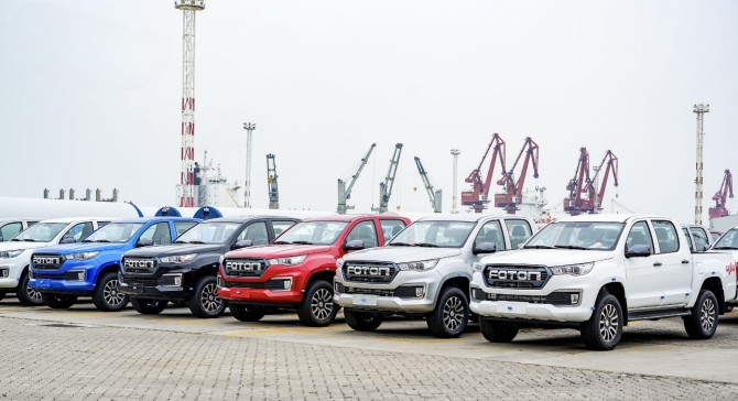 3月26日,福田汽車與中遠海運特運合資設立的廣州遠福汽車供應鏈有限公司正式完成揭牌,印有福田汽車和中遠海運LOGO的定制化滾裝船舶正式交付,同時600輛福田皮卡整齊列陣港口碼頭,即將作為合資公司運力體系落地后的首批規模化出口訂單,搭乘本次交付運營的“開元口”新船發往南美市場。