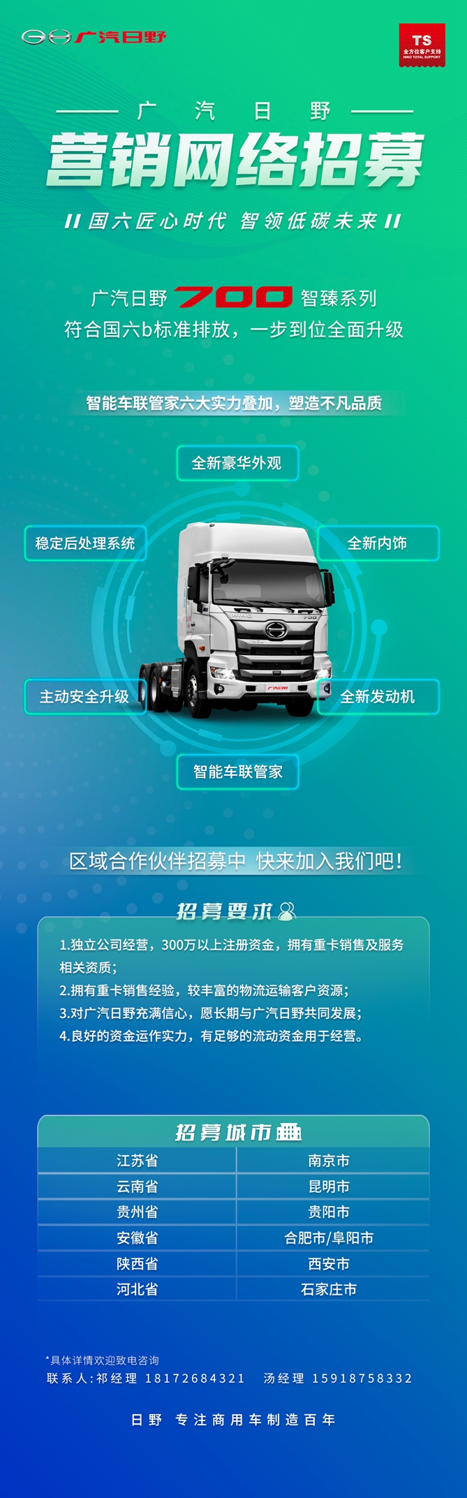 向這六省廣撒英雄帖!廣汽日野營銷網絡招募啟動啦