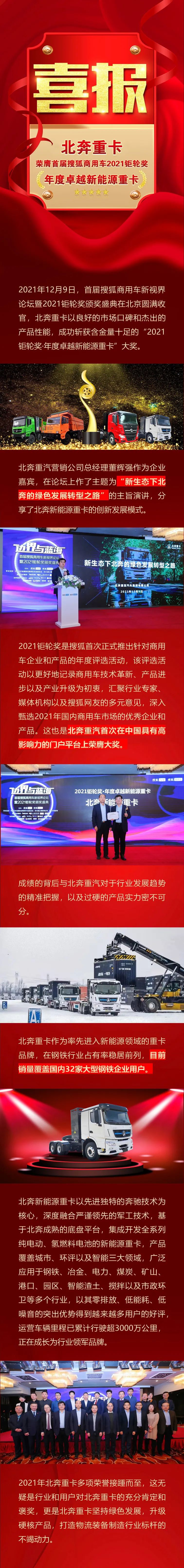 北奔重卡榮膺首屆搜狐商用車2021鉅輪獎·年度卓越新能源重卡獎
