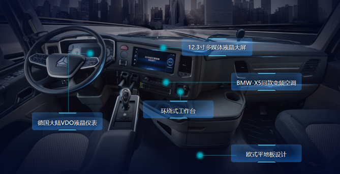 豪沃燃?xì)庾幽杠嚥捎煤廊A外觀與內(nèi)飾設(shè)計(jì),母車MAX采用歐系高頂寬體駕駛室,子車NX采用歐系平頂中寬體駕駛室;駕駛室空間大、風(fēng)擋玻璃寬、“前部俯沖式”儀表板提升人機(jī)互動(dòng)體驗(yàn);配備舒適航空座椅,帶有通風(fēng)、加熱、靠背氣囊調(diào)節(jié)等功能,與四氣囊減震系統(tǒng)、大跨度板簧相輔相成,有效過(guò)濾顛簸,讓司乘人員盡享安逸;配備國(guó)際知名恒溫空調(diào),無(wú)論嚴(yán)寒酷暑,車內(nèi)始終四季如春;駕駛室擁有良好的密封性和降噪優(yōu)化效果,可有效隔離噪聲污染和粉塵侵入,讓卡友擁有整潔體面的“移動(dòng)之家”。