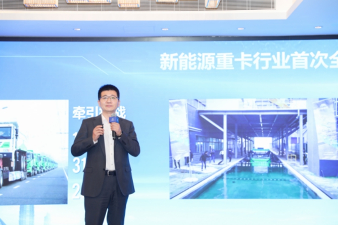 宇通重卡副總經理秦根才發表開場致辭:“在碳達峰、碳中和、能源安全等政策的驅動下,深入推動能源革命,加快建設能源強國已經成為主要發展方向,新能源重卡行業將由藍海走成一片‘紅?!?。