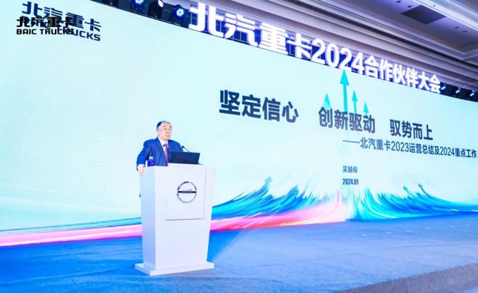 吳越俊強(qiáng)調(diào),2024年北汽重卡要繼續(xù)堅(jiān)持“高質(zhì)量低成本”企業(yè)戰(zhàn)略,打造國(guó)內(nèi)領(lǐng)先高質(zhì)量,打造高效的低成本運(yùn)營(yíng)能力,立志成為國(guó)內(nèi)重卡質(zhì)量標(biāo)桿企業(yè)。此外,還應(yīng)推動(dòng)新能源開(kāi)發(fā)更進(jìn)一步,全面加快海外業(yè)務(wù)拓展布局及渠道開(kāi)發(fā),合作共贏開(kāi)辟新的藍(lán)海市場(chǎng),再創(chuàng)行業(yè)新奇跡!