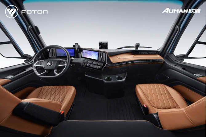 內(nèi)飾配色上,歐曼銀河3延續(xù)溫暖時尚的設計理念,推出胡桃棕、琉光橙、赤霞紅、遠山青4套方案,不僅提升了視覺享受,還能舒緩駕駛者的情緒與心境。此外鉆石切割飾件、貫穿式出風口的相得益彰,美觀又實用,讓駕駛艙兼具高級質(zhì)感與人性溫度。而≤3.5級的無菌生態(tài)艙守護卡友的呼吸安全。行業(yè)領先的前置進氣系統(tǒng),將駕駛室噪音降低2-3dB,讓駕駛環(huán)境更加靜謐、舒適,保證司機在運輸中也能感受到家的溫暖。