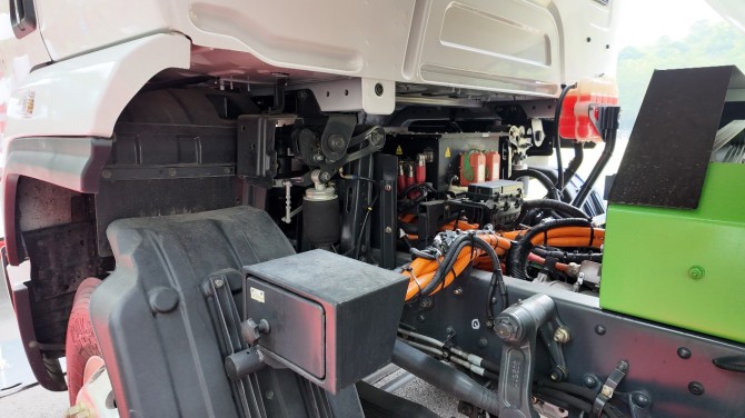 該車搭載法士特電機與法士特變速箱的黃金動力組合,峰值功率可達410kW。這樣的動力儲備,面對鄉村小路的陡坡、坑洼路段,即便車輛滿載飼料,也能輕松應對,起步平穩、加速有力,不會出現動力不足導致的爬坡吃力、行駛卡頓等問題。