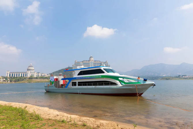 在水運方面,創新成果同樣奪目,國內首艘80客位氫燃料電池客運船于濟南萊蕪雪野湖下水,開啟了零碳航運新篇章。