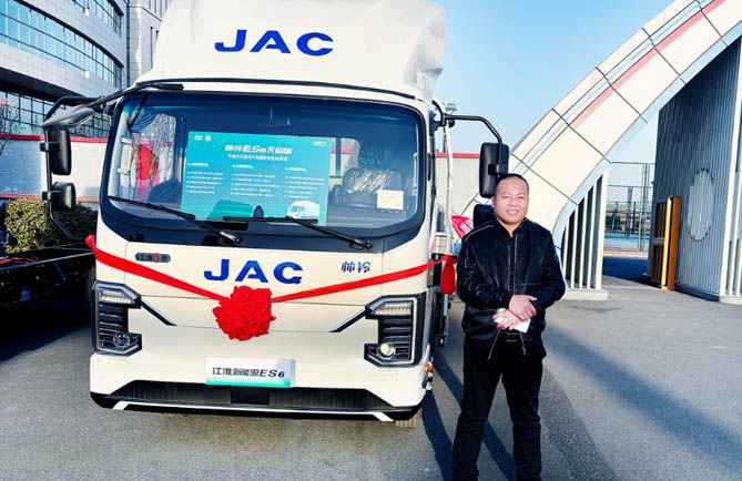 經過多方比較和試駕體驗,楊總最終選擇了信賴的老伙伴江淮1卡,以江淮新能源ES6輕卡開始了他的綠色物流運輸新體驗。